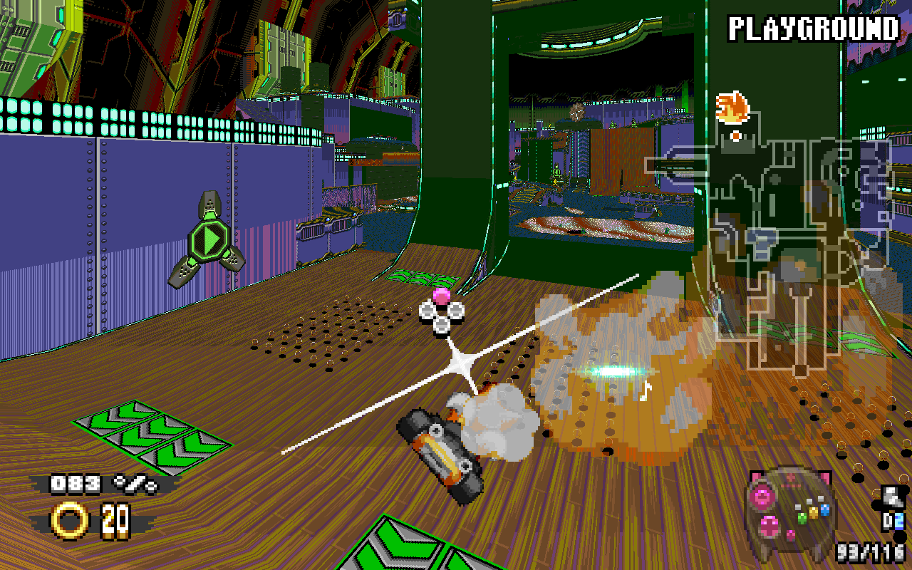 Some springs are placed to help you; a set of springs in front of a long straightaway can help you rocket up to speed. But some springs are technical traps, placed to deflect your racing line and send you careening off the course—and some can be both, depending on your angle of approach. Know your situation!